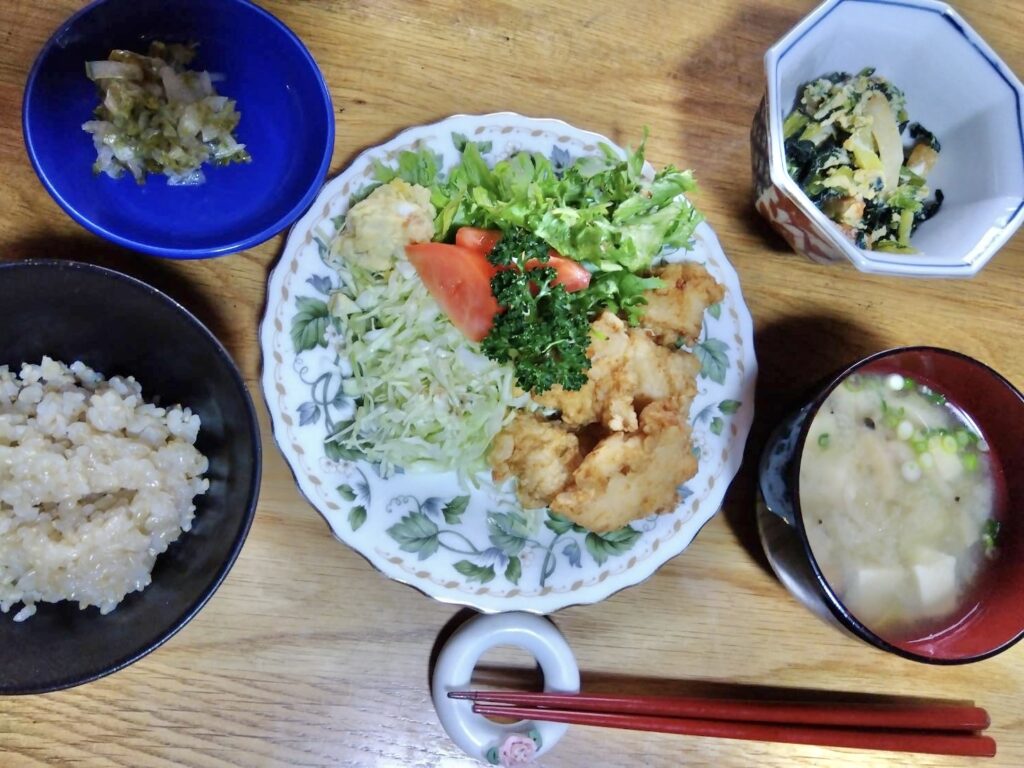 3月30日 ぴあ夕食 2026年4月3日 最終更新日時 : 2026年4月3日 studio0 鶏むね唐揚げ、レタス・キャベツ・トマト添え、小松菜と竹輪の卵とじ、白菜漬け Follow me! FacebooktwitterHatenaPocketCopy