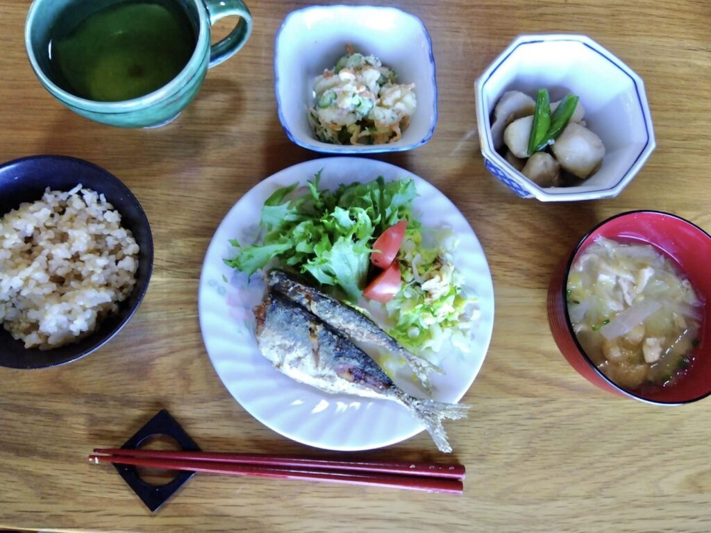 鯵唐揚げ、里芋の煮っころがし、ポテトサラダ